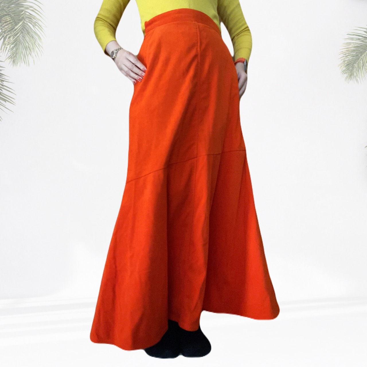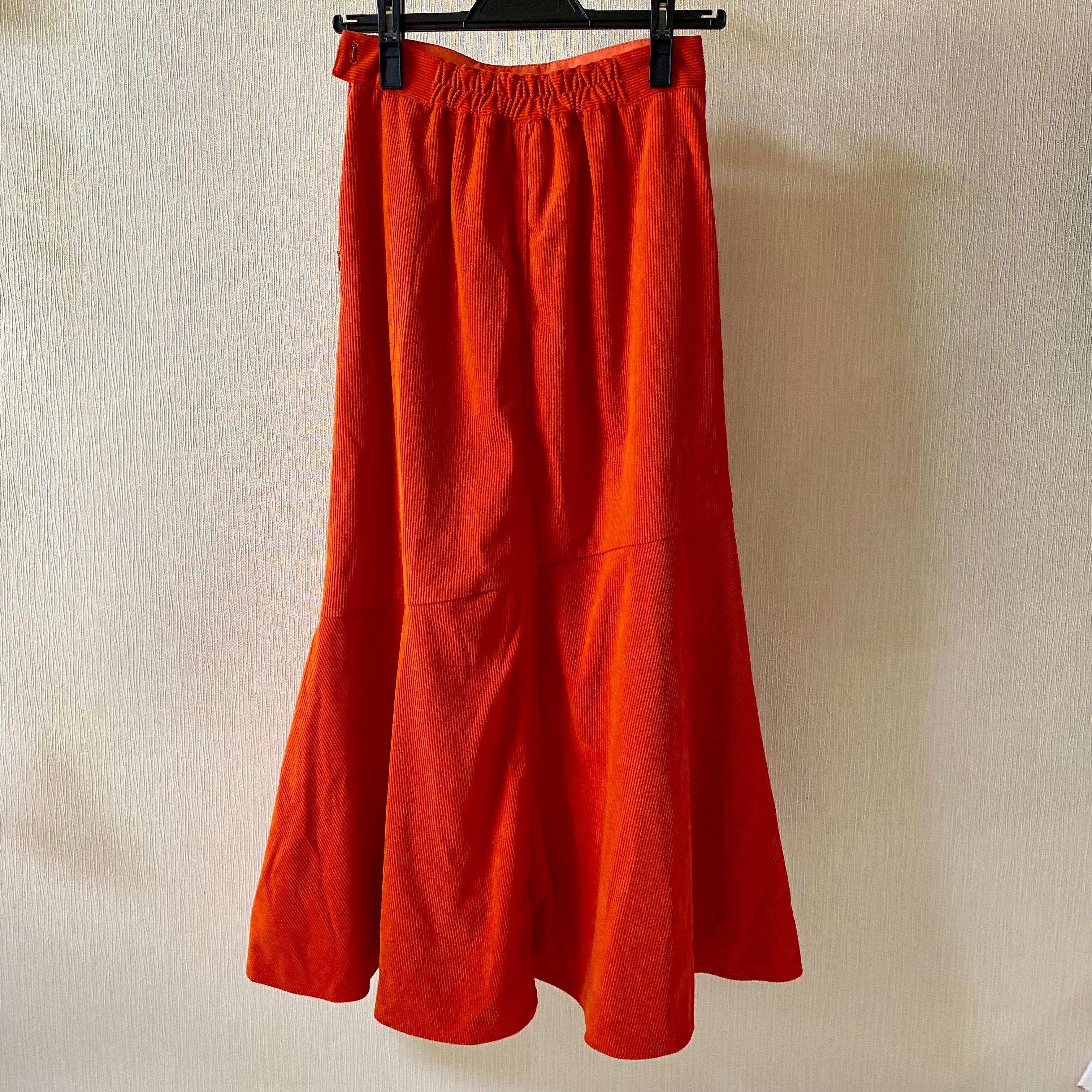 パキッと目が覚めるようなオレンジ色のロングスカートです。(裏地あり)