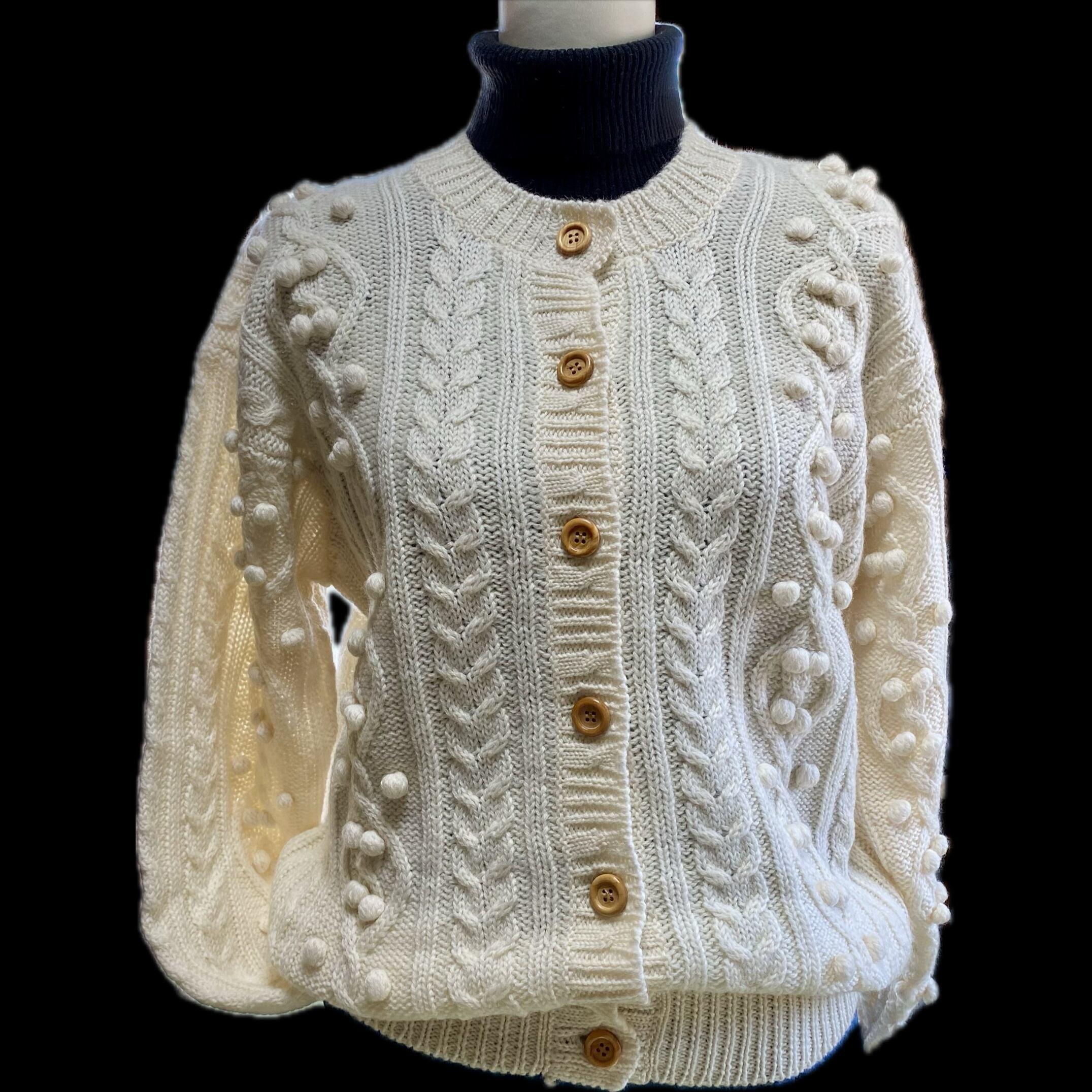 ウール100%のアラン模様カーディガン。